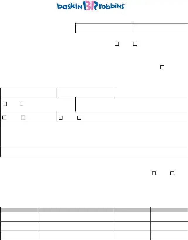 When considering a position at Baskin Robbins, the job application form serves as a crucial first step in the hiring process. This form collects essential personal information, including your name, contact details, and location preferences. It also inquires about your eligibility to work in the United States and whether you have a felony conviction, which may impact your employment. Applicants are asked to specify their desired position, start date, and salary expectations. Furthermore, the form explores your employment history, prompting you to list your previous employers, reasons for leaving, and job responsibilities. Education details are also requested, allowing you to share your academic background. A section on health ensures you can meet the physical demands of food service, while references are sought to verify your qualifications and work ethic. Finally, the application concludes with a certification statement that emphasizes the importance of accuracy and honesty in your responses. Each of these components is designed to help Baskin Robbins understand your qualifications and fit for the role, making it an important document in your job search journey.