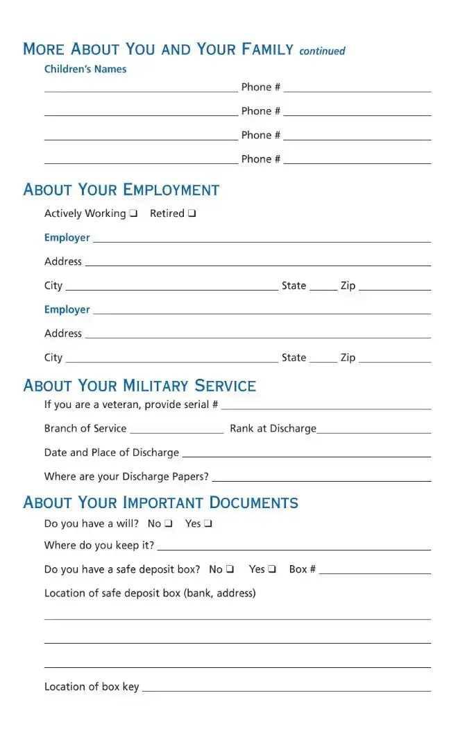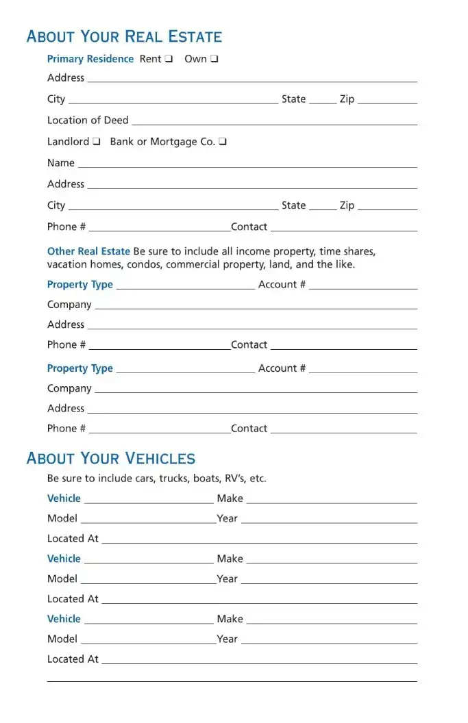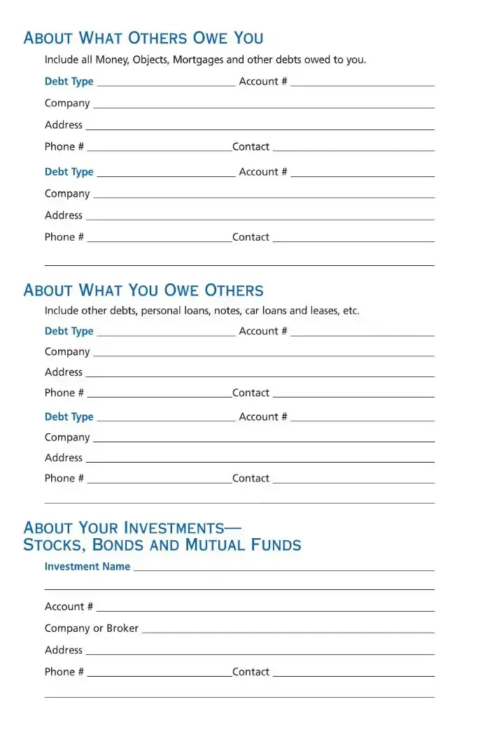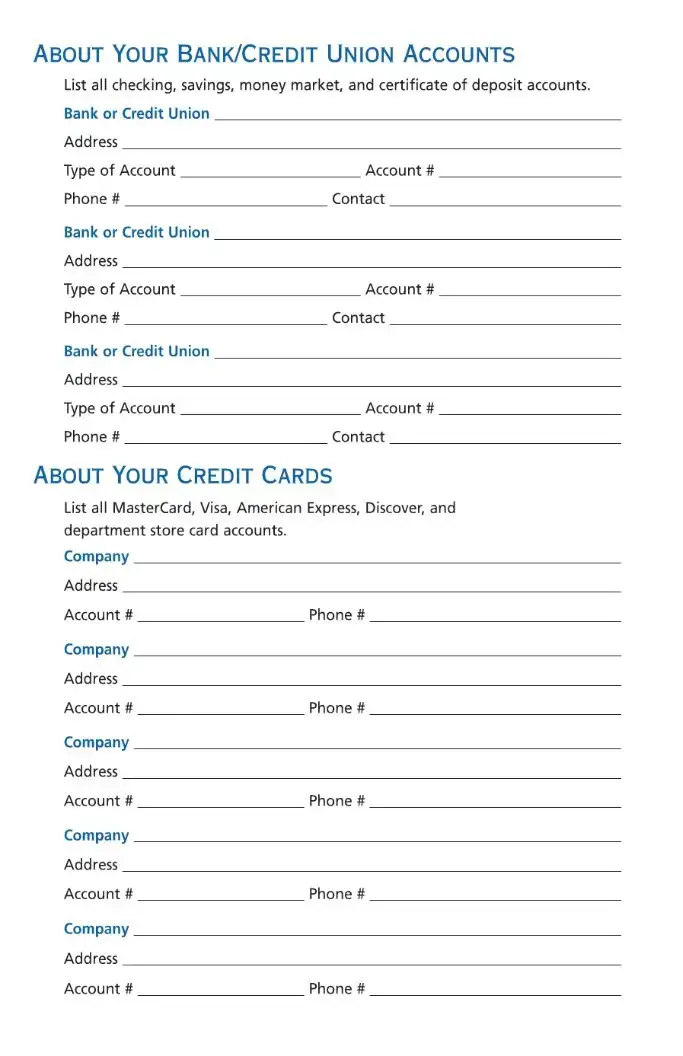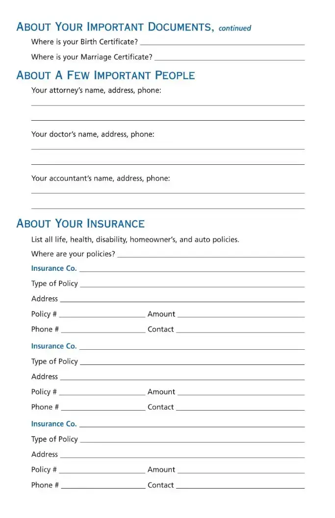 Preparing this information is a helpful way for you to get organized. Plus, it will be a great help to your family, your friends, and even your pets.