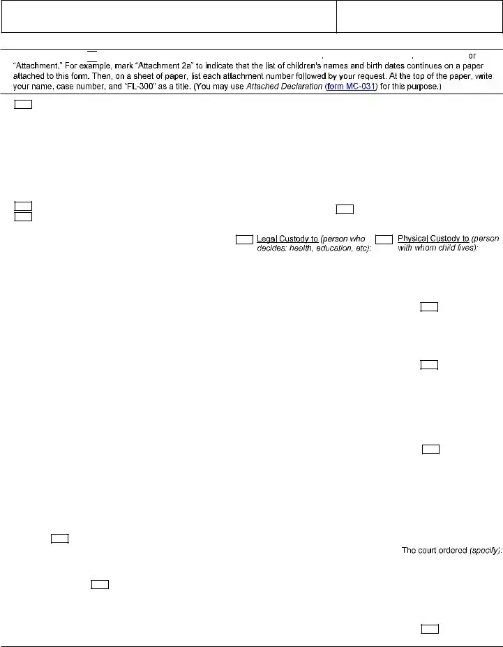 Another mistake is neglecting to specify the type of order requested. The FL-300 form covers various issues such as child custody, support, and domestic violence. It is crucial to clearly indicate the specific request being made to avoid confusion in court.