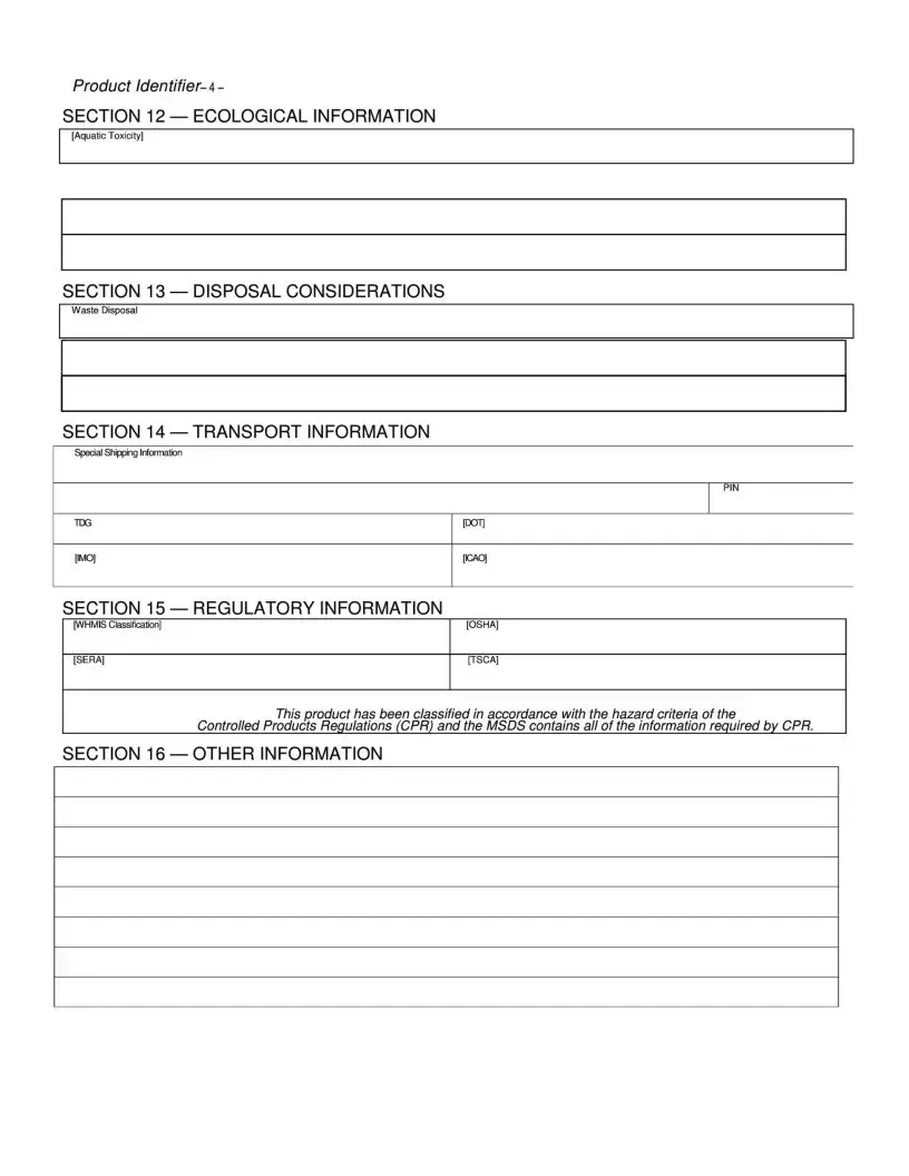 Filling out a Material Safety Data Sheet (MSDS) form is crucial for ensuring safety when handling chemicals. However, several common mistakes can occur during this process. One significant error is failing to provide complete information in the Product Identifier section. This section should clearly state the name of the chemical product, as well as any other identifiers that may be relevant. Omitting details can lead to confusion and may compromise safety.