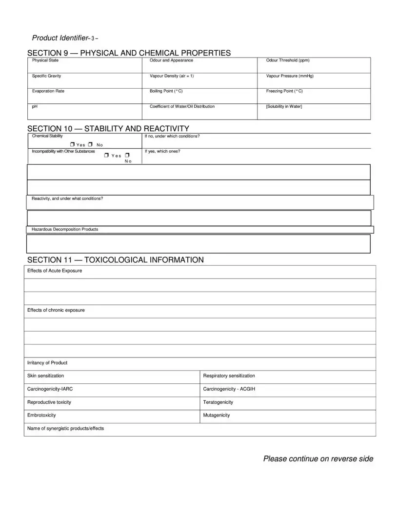 In Section 3, which addresses hazards, individuals often overlook the importance of accurately marking potential health effects. Failing to check the appropriate boxes for skin contact, eye contact, or inhalation can lead to misunderstandings about the dangers associated with the chemical. This oversight can have serious implications during emergencies.