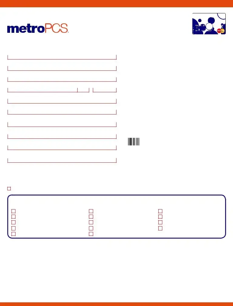 Rebate Details: Please complete the offer form and mail it with a copy of the sales receipt and a copy of the UPC barcode from the package of your Eligible Phone to: MetroPCS Dept. #2015-1006, P.O. Box 750999, El Paso, TX 88575-0999. By completing and submitting the information requested above, you consent to the collection, use and disclosure of the personal information given above to and by third parties for the purposes of processing the MetroPCS Prepaid Card claim. All mailed claims must be postmarked by 6/8/15 (“Postmark Date”) and mailed claims must be received no later than 6/22/15. Please allow 12 weeks after your request has been received for delivery of rebate. MetroPCS Prepaid Card will be fulfilled via mail. Offer valid only at participating MetroPCS stores or dealer stores. Offer not valid for handsets purchased at Wal-Mart or other National Retail Partners or online at www.metropcs.com. Offer not valid for any handset returned according to the MetroPromise. MetroPCS is not responsible for MetroPCS Prepaid Card requests that are postmarked after the Postmark Date or that are received more than 21 days after the Postmark Date, nor is MetroPCS responsible for late, lost, damaged, misdirected or postage-due mail or submissions. Ineligible, illegible, or incomplete MetroPCS Prepaid Card requests will not be honored. No exceptions will be made. MetroPCS reserves the right to audit any MetroPCS Prepaid Card claim and void any MetroPCS Prepaid Card claims that cannot be substantiated. Any other use of this offer form constitutes fraud. Offer valid for (1) MetroPCS Prepaid Card per Eligible Phone purchase with activation. MetroPCS reserves the right to substitute this advertised offer with an offer of similar value if advertised offer is not available at time of redemption. MetroPCS makes no representation as to the availability of any Eligible Phone. This completed offer form must be accompanied by a copy of your original dated MetroPCS sales receipt for an Eligible Phone and a copy of the original UPC found on the package of an Eligible Phone. All materials submitted become the property of MetroPCS. Void where prohibited by law. For questions, please call toll-free 1-800-999-6389 or visit https://www.metropcs.com/track-rebate.html. MetroPCS makes no representation, warranty or guarantee whatsoever in relation to the third-party products or services and MetroPCS assumes no liability whatsoever in relation to the third-party products and services even if MetroPCS has been advised of the possibility of such damages or can anticipate such damages. By requesting a MetroPCS Prepaid Card, you agree and covenant on behalf of your family, heirs, personal representatives, executors, assigns and insurers, to release, acquit, hold harmless, waive and forever discharge MetroPCS, its parent companies, subsidiaries and affiliates, and their respective officers, directors, members, managers, employees, vendors, contractors and agents (collectively, “Releasees”) from any and all claims, demands, damages, debts, costs, fees, obligations, loss, expenses, compensation, actions or causes of action whatsoever, of every nature, character and description, whether known, unknown, discovered, undiscovered, suspected or unsuspected (collectively, “Claims”), including but not limited to Claims arising on account of, or in any way growing out of, the delivery or use of the MetroPCS Prepaid Card, Releasee’s negligence or the negligence of any other participant. You also acknowledge that the MetroPCS Prepaid Card is not a product of any Releasee, and agree to hold harmless Releasees for any Claims related to the use of any such prepaid card. MetroPCS reserves the right to substitute a check of equal value in lieu of a MetroPCS Prepaid Card at its discretion.