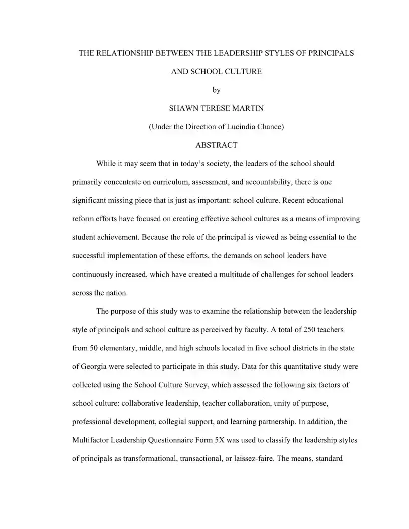 The findings suggest that school leaders should adopt transformational leadership practices to enhance school culture. By fostering collaboration and supporting teachers, principals can create a positive environment that promotes student achievement. The study underscores the importance of leadership style in shaping the educational landscape.