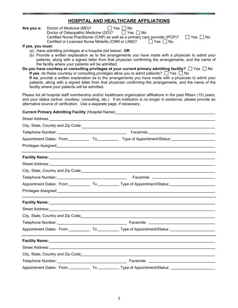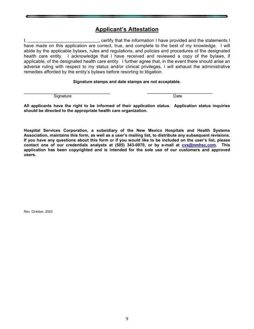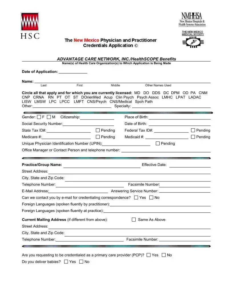 This application is required for healthcare providers such as physicians, nurse practitioners, physician assistants, and other licensed practitioners seeking to be credentialed by hospitals or health systems in New Mexico.