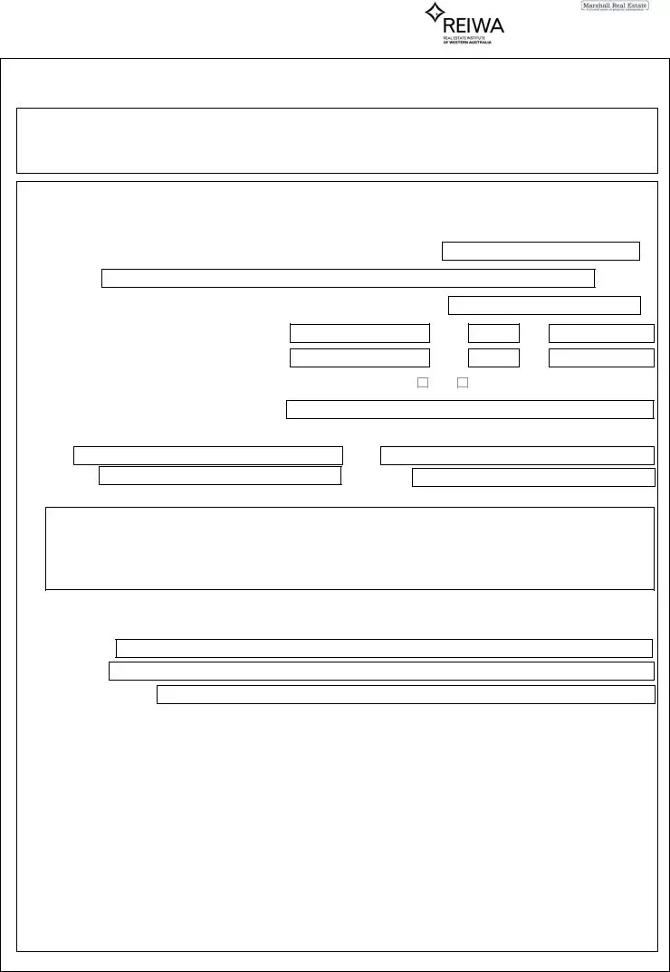 The Reiwa Tenancy Application form serves as a crucial step for individuals seeking to enter into a residential tenancy agreement in Western Australia. This form, approved by the Real Estate Institute of Western Australia, is designed to gather essential information from potential tenants. It allows the lessor to evaluate applicants based on their suitability, ensuring they find a tenant who pays rent punctually and maintains the property responsibly. Applicants are required to provide personal details, including their rental history, the number of occupants, and any special requests, such as pet ownership. Additionally, the form outlines the financial obligations necessary before taking possession of the premises, including security bonds, pet bonds, and initial rent payments. Importantly, it clarifies that this application is not the lease itself but a precursor to entering into a binding Residential Tenancy Agreement. If successful, applicants will receive a proposed agreement detailing the terms of their tenancy, while those who are not successful will have any option fees refunded promptly. Understanding the components and implications of the Reiwa Tenancy Application form is essential for prospective tenants navigating the rental landscape.