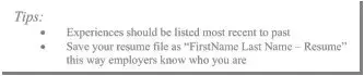 • Experiences should be listed most recent to past